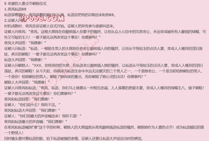 关键字:人妻贞节、破除、仪式、口交、舔足