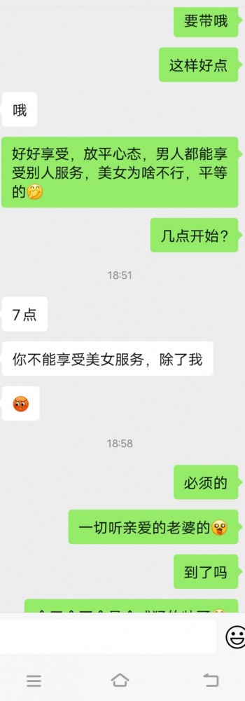 就在刚刚,老婆打电话让我送她去酒店!我刚送她回来。经过多次沟通,亲爱的老婆终于自己约了技师,很期待,自己开好房,当时电话里听到送她去,一下就硬了,回来的路上,激动,刺激,担心都有。顺其自然吧,此贴没图哦,抱歉了。图片太多怕泄露隐私,现在这么发达的,等她回来说感受吧