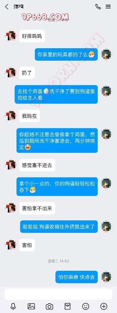 既然出现了,那必须继续调教玩弄起来咯!家里的玩具怕她妈发现都扔了,只能就地取材,所以有了鸡蛋塞狗逼,酒精瓶子插逼的戏码,详见聊天记录吧。