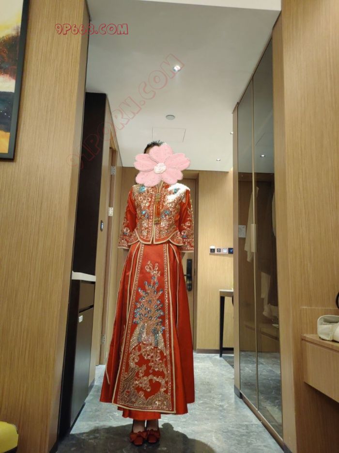 雪白的皮肤紧贴红色秀禾,前凸后翘成熟中透露着性感风骚。
