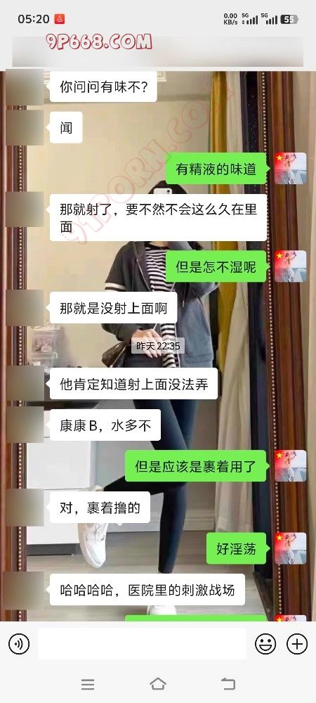 这几天一直在医院陪护,我爸做了一个手术,医院快热死了,中央空调不给开,病房窗户又好小,感觉像一个蒸笼,还好是一个双人房,另一个陪床的是个30来岁的男的,长得人高马大的,这好几天没聊骚了,对于一个性欲强的女性来说还是挺难受的,晚上好几次不由自主的伸到内裤里,这陪护挺能说的,聊了半天我去洗澡了,本来不想在医院洗澡,但是感觉身上黏糊糊的,我爸还不能下床,洗完澡换了个宽松的短裤,感觉凉爽了很多,我们两个陪护的小折叠床都是贴着墙放的,直角结构,正好有个绿帽朋友和我说他老婆晚上9点多去跟教练练车了,去好几天了每天晚上11点多回来,他鼓励她勾引教练,估计天天晚上被教练开车,我们讨论的心潮澎湃,我感觉我已经流水了,稍后我大胆的撇开了腿,躺在折叠床上,短裤与大腿空隙很大,我用余光看到了他在看我,我感觉他看到了我的b了,因为我洗澡后没穿内裤,这算是一种勾引把,莫名其妙的感觉好刺激,他起身经过我的时候我看到了他裤裆鼓鼓的,应该是硬了,然后他问我上厕所吗,如果不上他就洗澡,我说上,当我上厕所的时候我把内裤挂在了喷头对面的毛巾架上,然后跟我一个朋友讨论这件事,我们都觉得好刺激,也不知他偷用我的内裤没,附上聊天记录