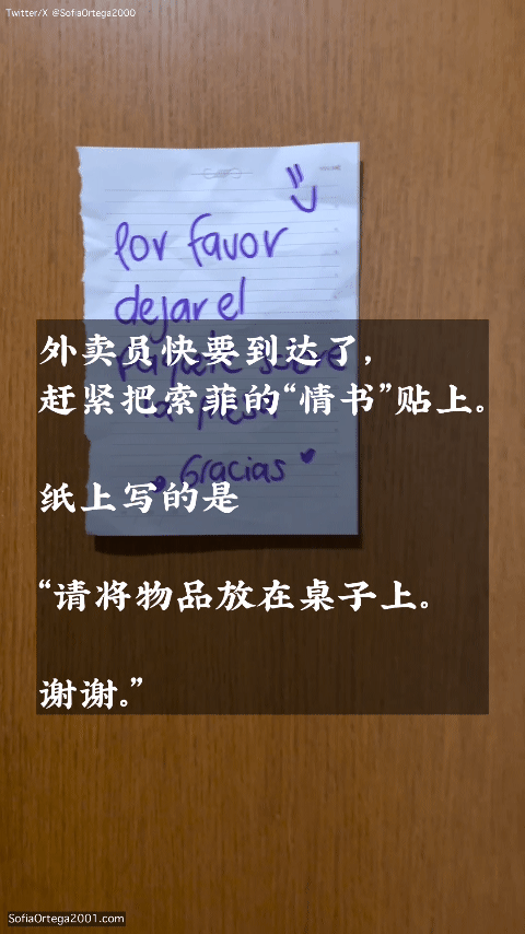 赶紧在门口贴上索菲写好的“情书”,
