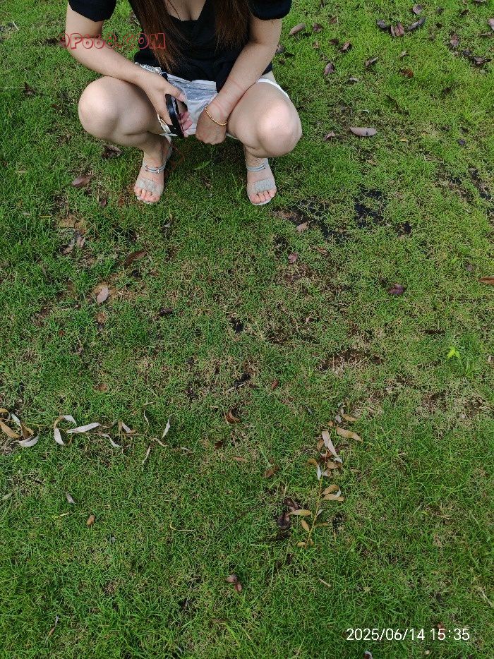 上个月带着骚妻去公园露出,当时她说要尿尿,因为刚下完雨,以为公园没什么人,就准备在草地上解决,哪知尿的时候前面转角突然来了个老头,老婆白白的大屁股被那个老头看的一清二楚。
