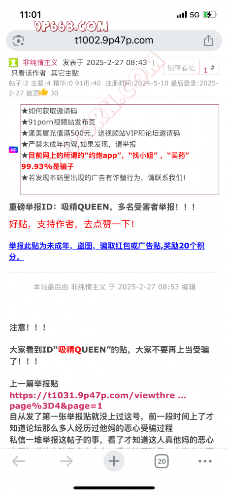 多名受害者都在发帖举报这个吸精狗,并且实锤了,奈何版主不封禁,我和你的实锤跟帖还被版主屏蔽了,真够搞笑的。