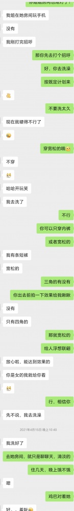 打完招呼后,因为爸妈也在家,不敢冒冒然行动,继续我们的撩骚事业——已经有了胸部照片,当然趁热打铁,提出给姐姐买情趣内衣。既让姐姐的美更加衬托,也会爽到后续的自己