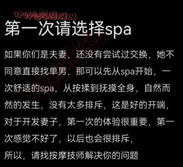 确实我和我媳妇儿就是外出旅游的时候先玩了两次异性私密spa我俩在一屋我女技师她男技师给她口和扣