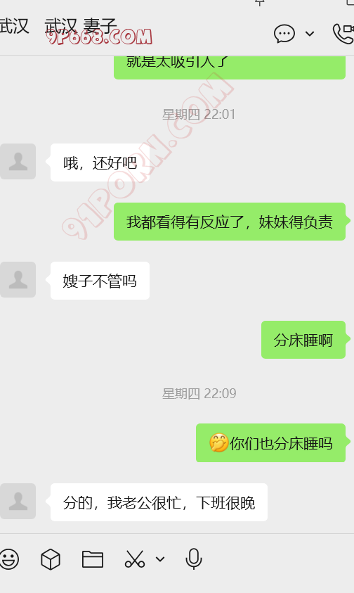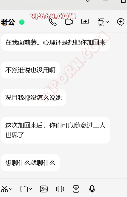 第二阶段。2026年迎来转机。绿帽W突然发来信息,说人妻初步同意把我的微信好友加回来。原来人妻又注册了一个小号,在绿帽W的努力下,只同意加微信聊骚满足绿帽W的绿色幻想。人妻始终不知道绿帽W每时每刻都在把人妻的信息和我共享。就这样,人妻通过小号加了我的微信。以下就是聊天的过程,人妻一步一步的把自己暴露给我,崇拜我。