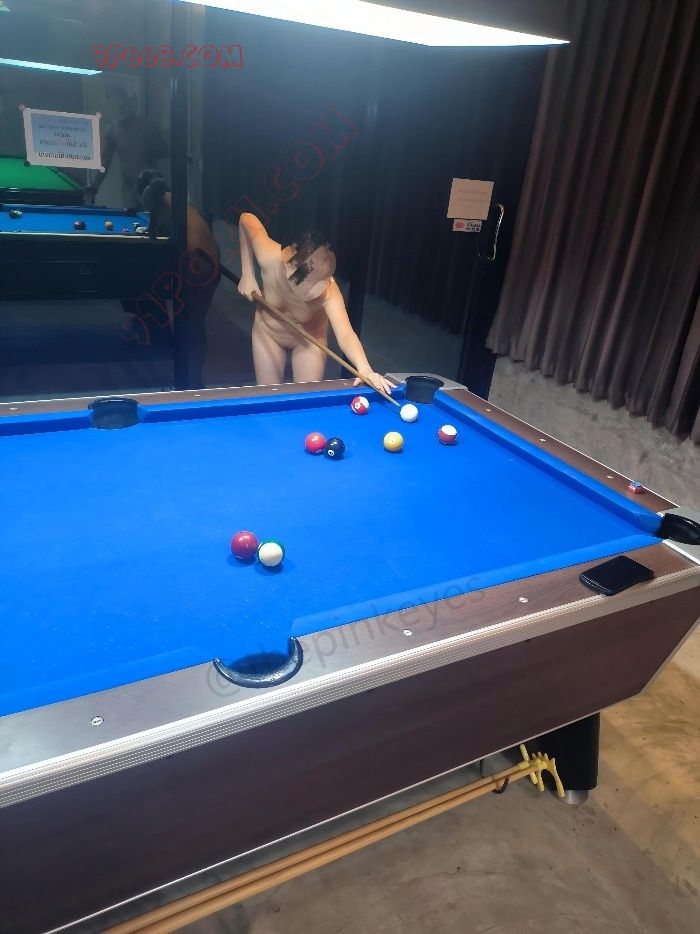 台球室有2个桌子,小小屋子有五六个人,一边摸奶一边打球,气氛焦灼了起来。