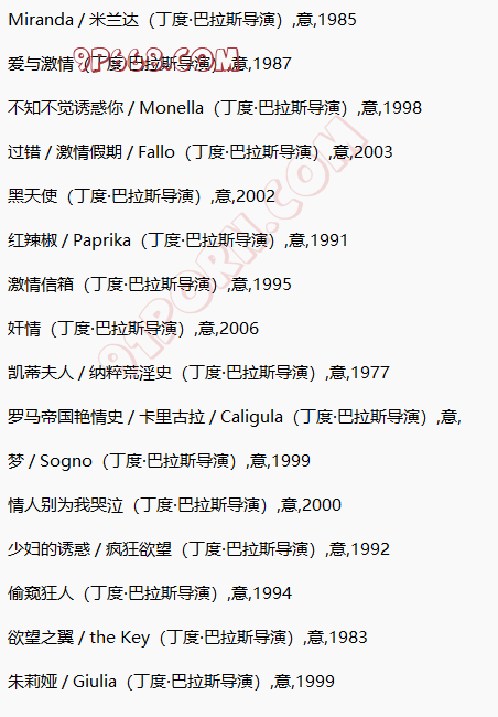他比较知名的电影就包括《罗马帝国艳情史》,但也因过大的尺度,被划入“世界十大禁片”之列。