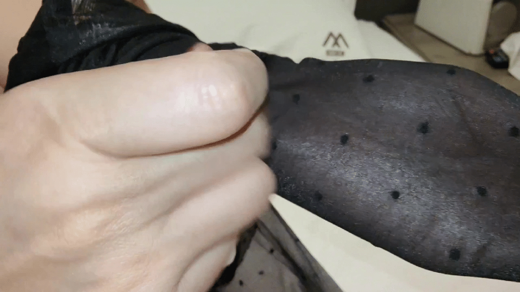 波点油亮黑丝配上红色脚趾甲,太戳丝袜控的审美了