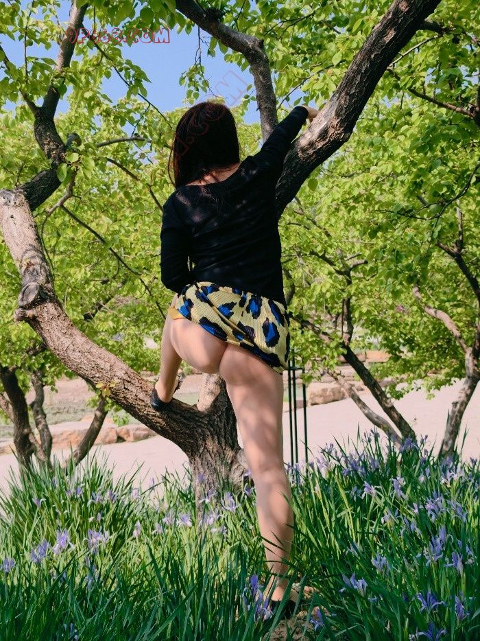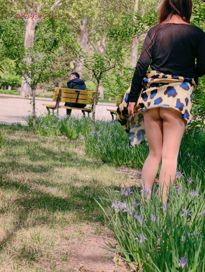 公园挺大的,瑶瑶知道我在后边拍,故意把裙子撩起来